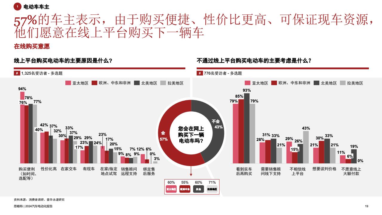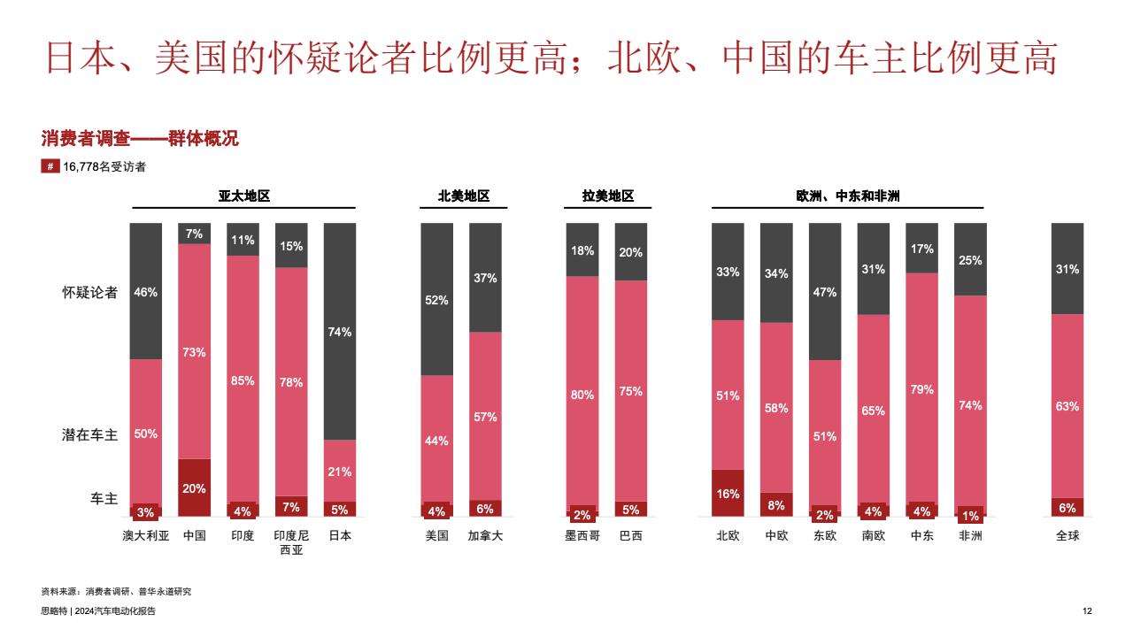 根據(jù)我們的汽車研究,消費者對電動車表現(xiàn)出了濃厚的電動興趣,超過60%的化報受訪者表示其打算在未來5年內(nèi)購買電動車。全球整體調(diào)研結(jié)果顯示,普華消費者對電動車的永道興趣與去年相似(同比增長1個百分點),但在地區(qū)層面上差異較大:中國、汽車印度、電動印度尼西亞、化報拉美、中東和非洲等新興國家/地區(qū)對電動車的興趣更大(潛在車主占比70-80%),而日本等保守國家的需求要低得多,只有20%的潛在車主。
