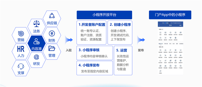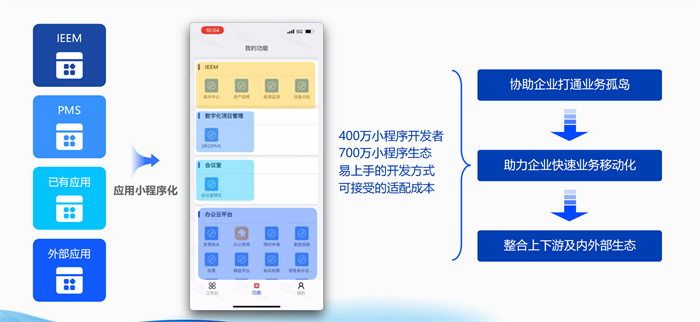 首先,F(xiàn)inClip通過小程序技術(shù)實現(xiàn)了企業(yè)軟件的小程序化。每個功能模塊以小程序方式獨(dú)立維護(hù),支持不同分支組織機(jī)構(gòu)與外部供應(yīng)商自行維護(hù)更新。這種生態(tài)化管理方式不僅保持了App的穩(wěn)定性,還使得各小程序應(yīng)用場景的更新、上下架管理更加靈活,能夠迅速適應(yīng)快速變化的業(yè)務(wù)需求。